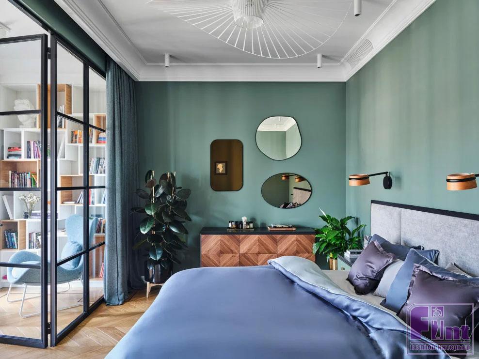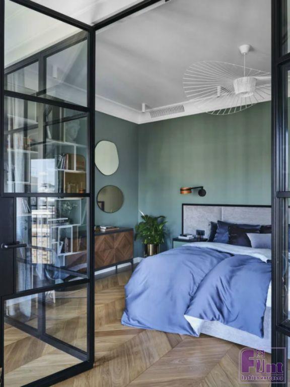 Спальная и гардеробная находятся в глубине квартиры и отделены стеклянными перегородками. В квартире Александра много элементов мебели, сделанных по индивидуальному заказу. А кровать была изготовлена по эскизу самого хозяина. Межкомнатных дверей во всей квартире всего 2 штуки: в ванной и гостевом санузле. Все остальные зоны и комнаты выглядят как одно большое пространство.