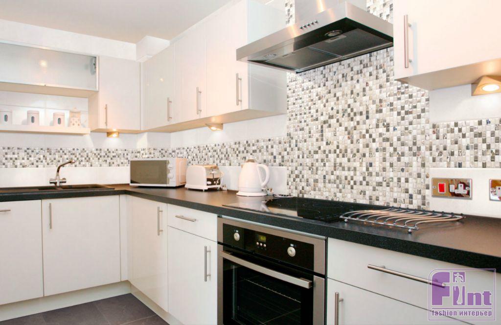 Если у вас угловой кухонный гарнитур, и вы решили сделать верхние шкафы только на одной стороне, а вторую оставить пустой, выложите фартук во всю стену. Желательно при этом выбрать еще и крупноформатную плитку, но это не принципиально. Если хочется сделать акцент на фартуке, откажитесь от узоров в стиле пэчворк. Лучше обратиться к деликатной геометрии или выбрать необычную раскладку, если у вас «кабанчик» или прямоугольная мелкая плитка.