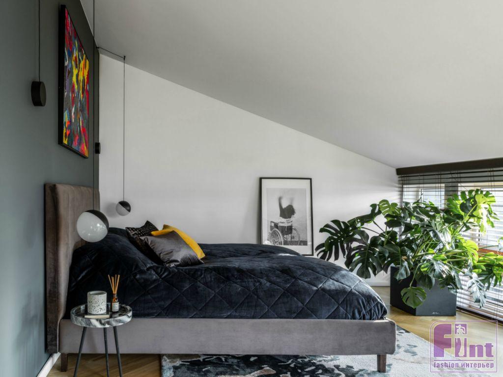 Рядом расположена спальня Влада, которая выдержана в более тёмных тонах. Через стену — уютная ванная. Лисовец сам подбирал все оттенки для оформления помещений, советуясь со своими друзьями-дизайнерами.