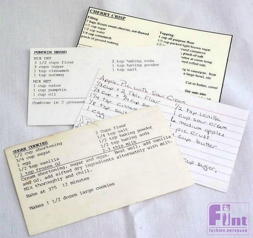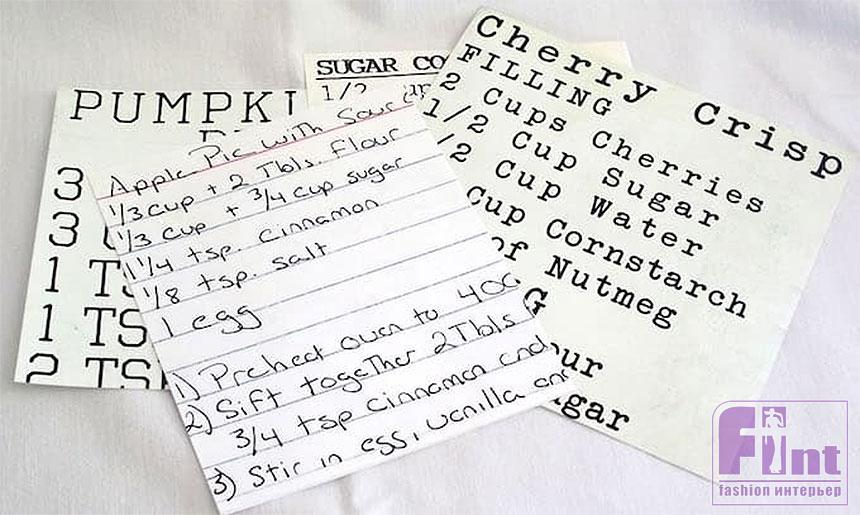 Пока все наши детали будут сохнуть, найдите старые карточки с рецептами и отсканируйте их в цифровой вид. Если у вас нет возможности сканировать исходники рецептов, попробуйте найти что-то похожее в интернете. С помощью редактора изображений на компьютере измените размер отсканированных или скаченных изображений до размеров скалок, и распечатайте изображения на принтере.