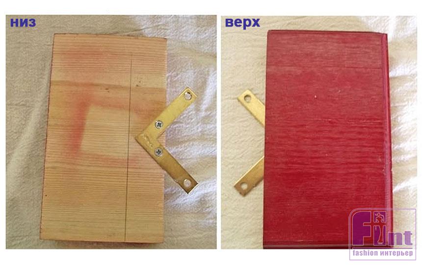 Чтобы обеспечить устойчивость наших держателей для книг, прикрепите к ним с помощью шурупов металлические уголки. Затем разметьте места для отверстий под шурупы для установки отпиленных скалок, просверлите сквозные отверстия и закрепите скалки при помощи длинных шурупов подходящего диаметра. Если вы не уверены в своих силах, можно использовать качественный клей по дереву и просто приклеить наши отпиленные скалки к основанию. Правда, в этом случае, конструкция будет менее прочная, чем при механическом креплении с помощью шурупов.