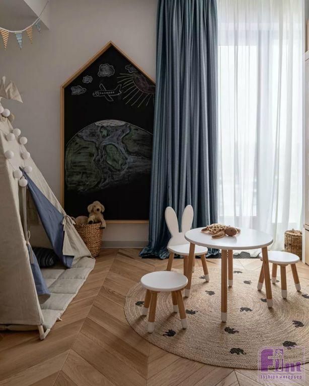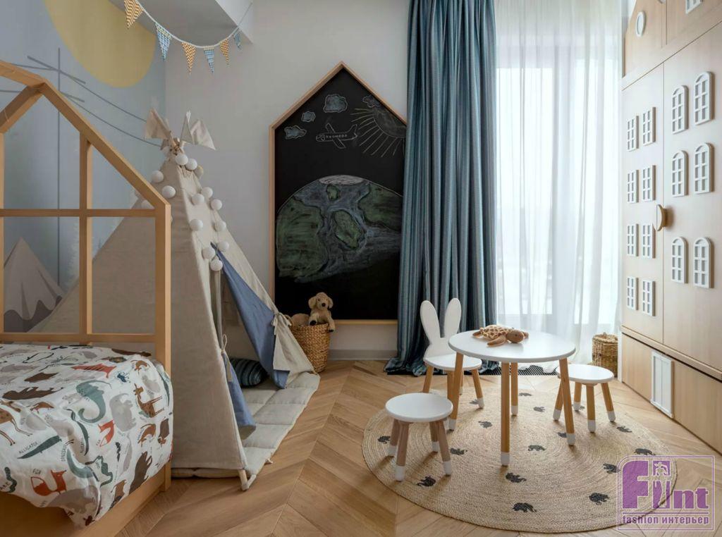 Дизайнеры по интерьерам Анна Самарина и Татьяна Малафеева из студии Moloko interior спроектировали квартиру 150 кв. метров в современном жилом комплексе в Екатеринбурге. ЖК «Кандинский» построен по проекту бюро AHR в тихом районе на берегу реки Исеть. Интерьер квартиры для молодой семьи с ребёнком соответствует европейскому стилю архитектуры дома.