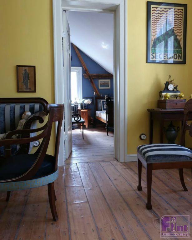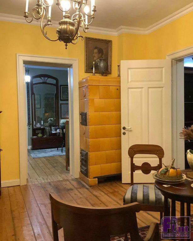 «Я выбрал югентстиль (немецкое название стиля модерн) для интерьеров виллы Вильдфриде, как единственно возможное решение, соответствующее времени постройки здания и планировке квартиры. В ней чудом сохранились оригинальные двери, полы и даже жёлтая кафельная печь. И это позволило мне восстановить облик курортной квартиры на Балтийском море в эпоху Серебряного века» — начинает свой рассказ об уникальной квартире Александр.
