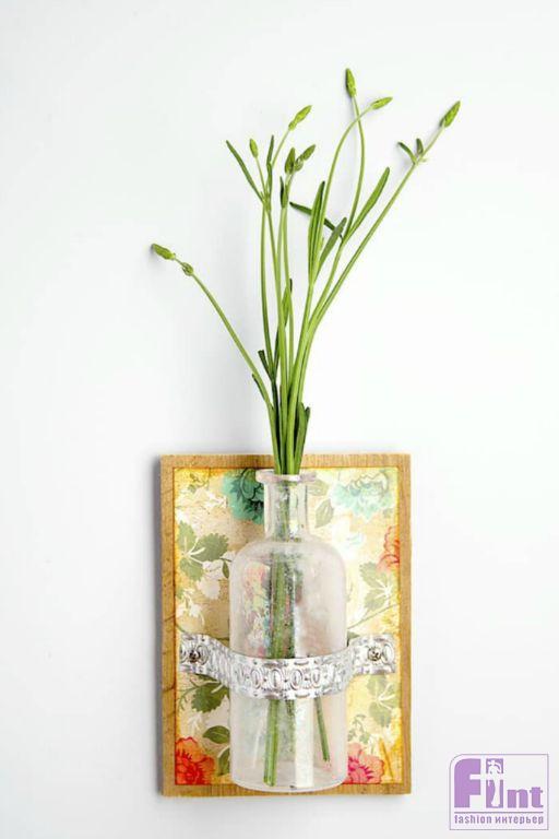 Осталось налить в нашу настенную вазу немного воды, используя кухонную воронку, и поставить в вазу красивые цветы! Кстати, наше панно вовсе не обязательно вешать на стену! Если его поставить на комод, низкий шкафчик или тумбочку и прислонить к стене, наш стильный аксессуар прекрасно дополнит и оживит любой интерьер!