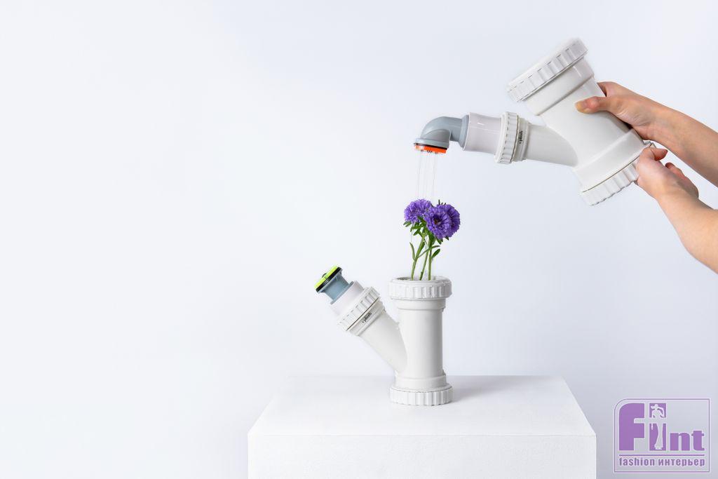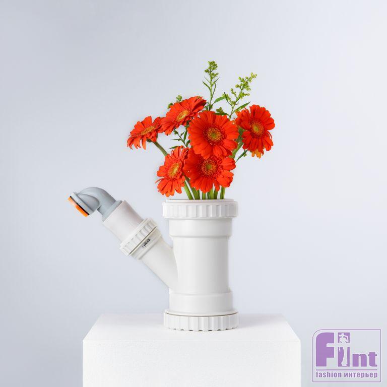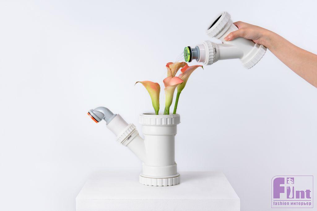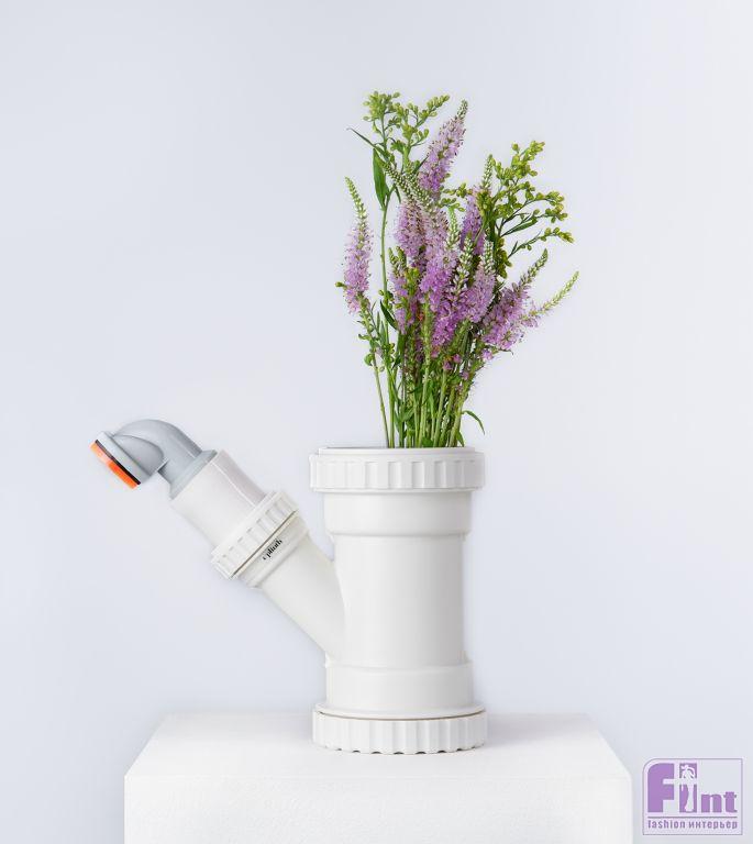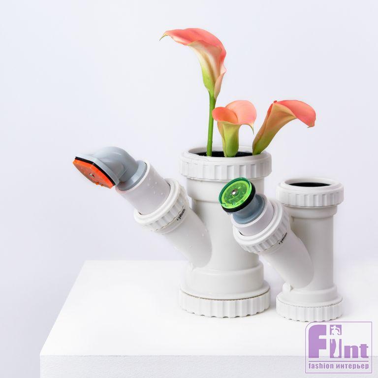 Лейки идеально стыкуются между собой, благодаря правильно подобранным диаметрам сантехнических труб. Соединив две лейки в одну конструкцию можно преобразить их в одну высокую вазу, которая может стать отличным привлекательным акцентом в стильном интерьере.