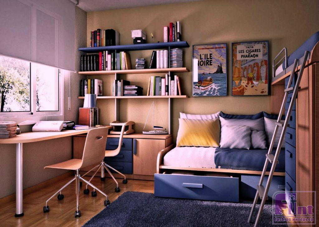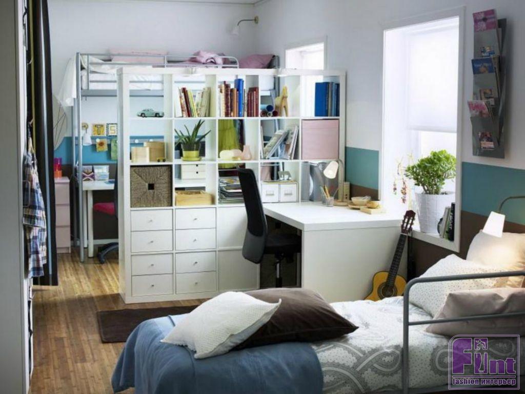 Начнем, пожалуй, с самой важной зоны в любом помещении – это организация спального места. Если комната большая, то лучше всего расположить небольшие, но функциональные диванчики по обеим сторонам комнаты. В этом случае пространство делится на две индивидуальные части, и у каждого из детей будет своя зона, в которой можно и заниматься, и отдыхать. В другом варианте можно расположить диваны по одной стене, а напротив них разместить рабочие места. Не стоит забывать и о зоне у окна. Приобретя специальную мебель по размерам оконного проёма можно получить два функциональных уголка для занятий.