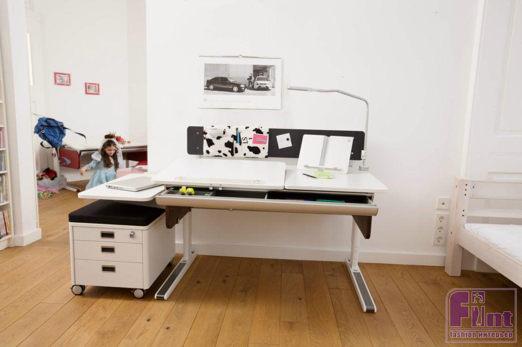 Если младший из детей только собирается стать первоклассником, оформлять помещение стоит заранее. Малыш должен привыкнуть к рабочему месту, понять, что учеба – это, прежде всего труд. А для хороших оценок и снижения усталости от занятий ему требуется удобство и комфорт. На этом этапе у старшего ребёнка наверняка уже имеется рабочее место. Его можно оставить, или сделать эту зону общей – в одном стиле. Важный совет! Для первоклашек рекомендуется покупать мебель, которая будет «расти» вместе с ним, и регулироваться согласно росту ребёнка. Прежде всего, это трансформируемый стол и аналогичный по конструкции стул.