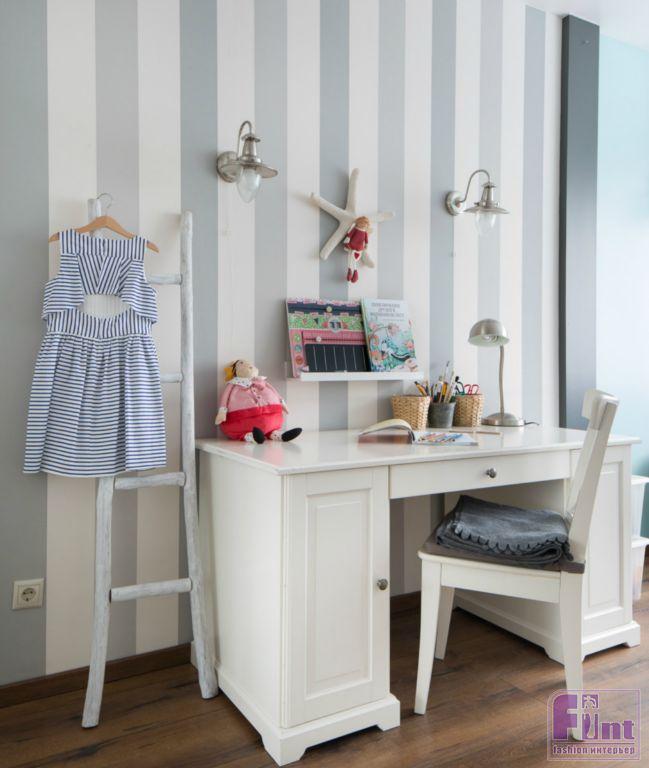 Тема винных пробок присутствует и в изголовье родительской спальни, и в ванной комнате. Морские мотивы прослеживаются в спальнях девочек. У старшей дочки обои на стенах имитируют морскую пену или ракушечник, а в спальне младшей расположился ночник в виде маяка, который делали на заказ в городе Тольятти. Птичьи клетки, трансформированные дизайнером в потолочные светильники в комнате старшей дочери, придают интерьеру комнаты ноты экзотики.