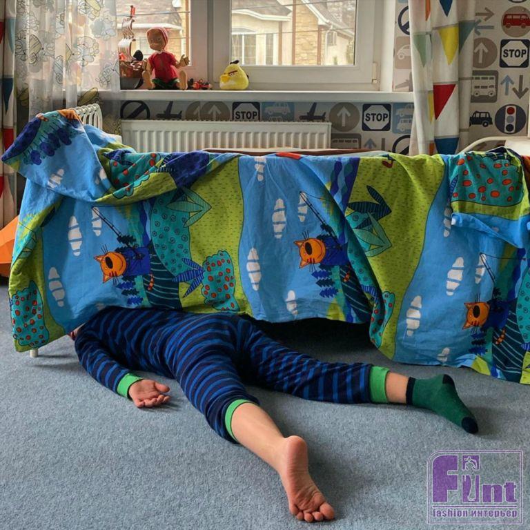 В детской все четыре стены разные, на одну даже нанесена изумительная фреска. Комната разноцветная, удивительно весёлая, как и задумывала певица. Творческий мальчик любит играть с мамой среди ярких цветов интерьера.