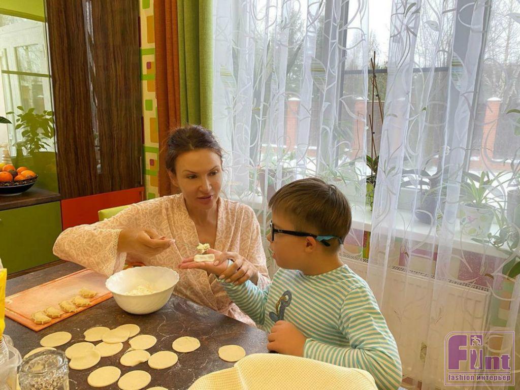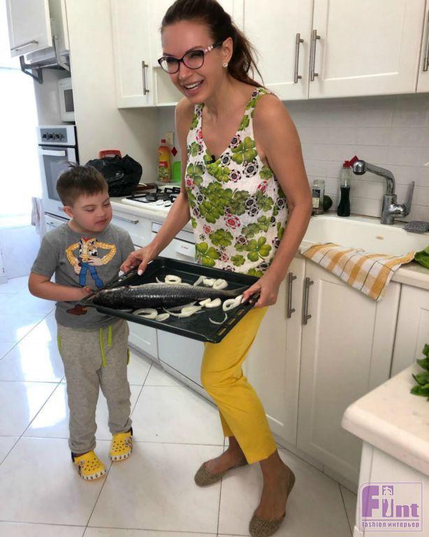 Есть в особняке помещение с ароматной кедровой бочкой. Эвелина и её домочадцы любят оригинальные, полезные для здоровья водные процедуры. Предусмотрен в коттедже и миниатюрный спортзал. Но напряженный график Эвелины не оставляет времени для занятий в нем. Святая святых уютной дачи – просторная кухня. Артистка очень любит поесть и часто балует сына различными вкусностями. Гарнитур для помещения сделан на заказ по эскизу Александра. Он яркий, с множеством сочетаний приятных оттенков. Материал столешницы – тёмный керамогранит. В тон мебели подобрана и расцветка холодильника.