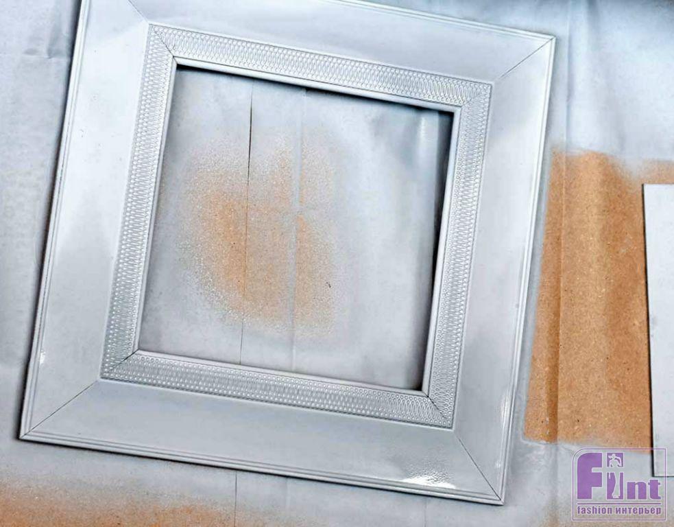 Первое, что нужно сделать, это удалить стекло и подложку из рамки для фото. Затем при помощи аэрозольной краски выбранного цвета окрасьте раму и подложку. Цвет можно подобрать таким образом, чтобы он сочетался с основным цветом чайной чашки, или наоборот, контрастировал бы с ней. Если в вашей рамке для фотографий не оказалось подложки, вам нужно будет вырезать ее из плотного картона или тонкой фанеры.