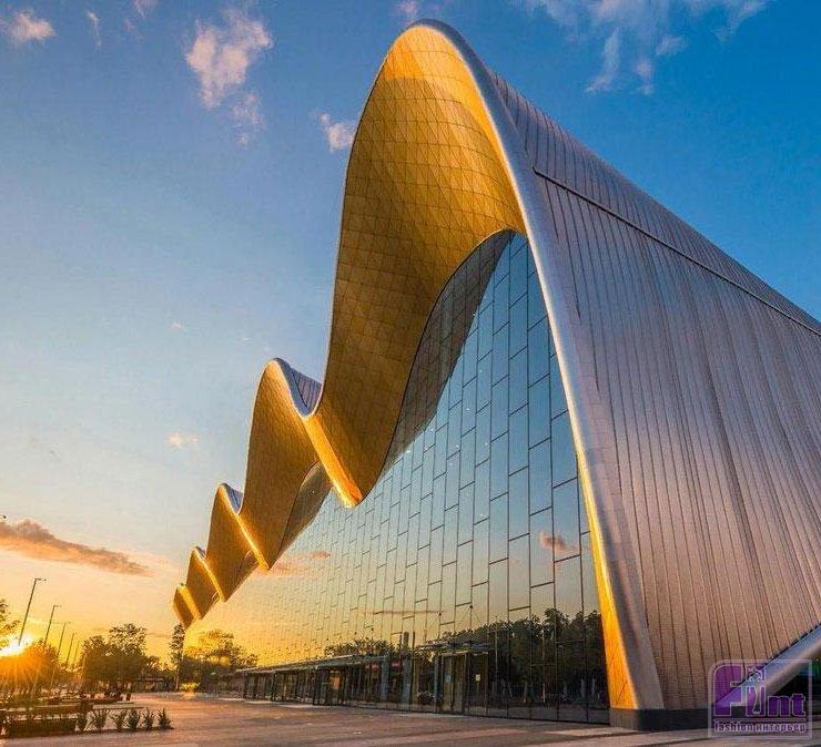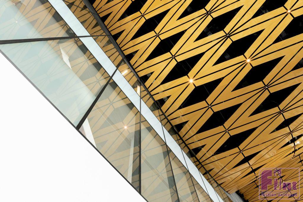 Нужного эстетического эффекта позволило добиться и покрытие кровли — разные по форме алюминиевые панели толщиной 0,8 мм. Учитывая длину панелей, в некоторых случаях превышавшую 100 м, их профилирование, вальцовка и каландрирование осуществлялись непосредственно на стройплощадке. За формообразование отвечала система труб и кронштейнов, угол наклона которых соответствовал углу наклона профлиста, а также сложная кровельная подконструкция, позволившая добиться нужного радиуса кривизны на всех участках крыши.