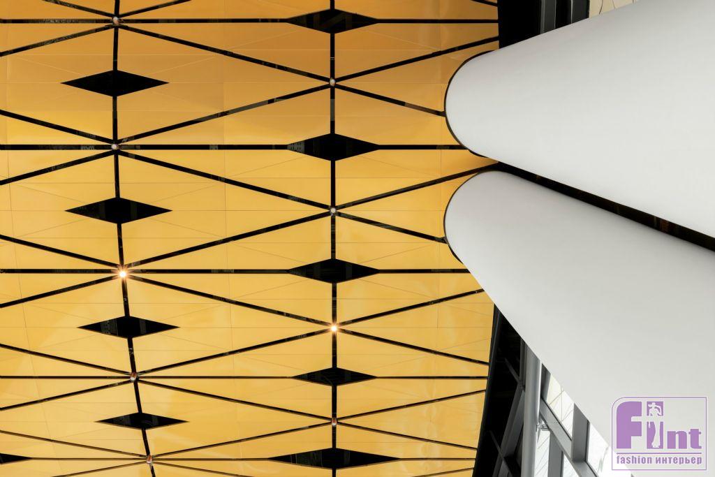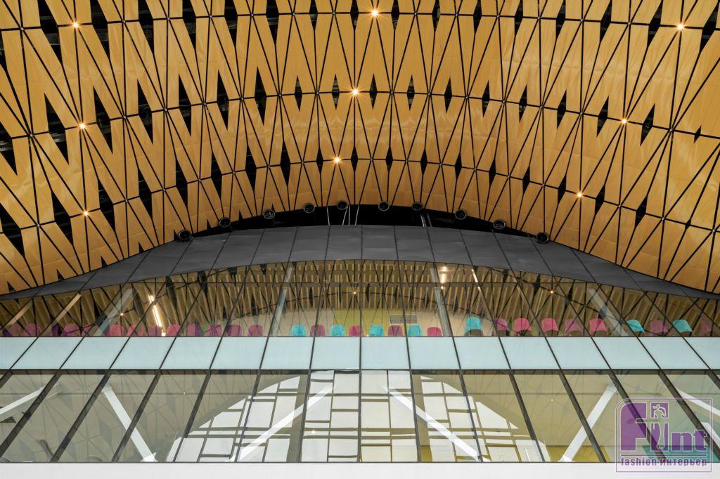 Одной из них стало, например, создание криволинейных поверхностей. По замыслу архитекторов, высокий потолок в зоне холлов должен был повторять идею волны кровли. Для этого использовали потолочный профиль со специально заданным на заводе радиусом изгиба, что существенно облегчило монтаж конструкции. На профиле фиксировалась гнутые цементные плиты толщиной всего 8 мм, после чего на них наносилась штукатура, краска, декоративные покрытия.