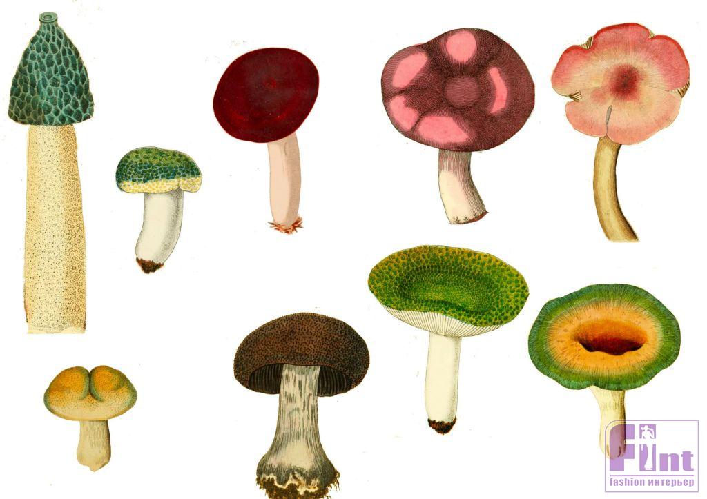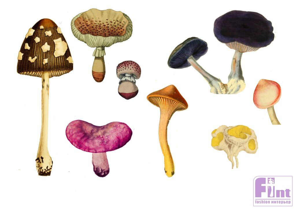 Печать изображений грибов на ткани