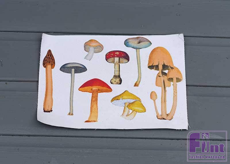 После приготовлений, поместите бумагу с приклеенной тканью в принтер, убедитесь, что она расположена правильно, чтобы печать была выполнена на стороне с тканью, и распечатайте выбранные вами изображения грибов. В настройках принтера установите опции печати для наилучшего качества. После печати нашу ткань можно просто снять с бумажной основы, осторожно отделив её.