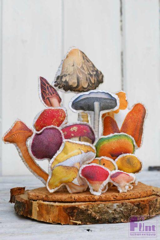 Осень – время грибов. Ценители «тихой охоты» знают, что осенью в лесу можно собрать приличный урожай грибов, зарядившись попутно природной энергией от отличной прогулки на свежем воздухе. Но что делать, если у вас нет поблизости грибного леса, или вы не являетесь сторонником многокилометровых лесных марш-бросков, но грибы, несмотря ни на что, любите? Выход есть! Из самых обычных материалов можно сделать удивительно красивый и крайне необычный аксессуар для стильного интерьера – целую россыпь грибов, «выросшую» на старой деревяшке.