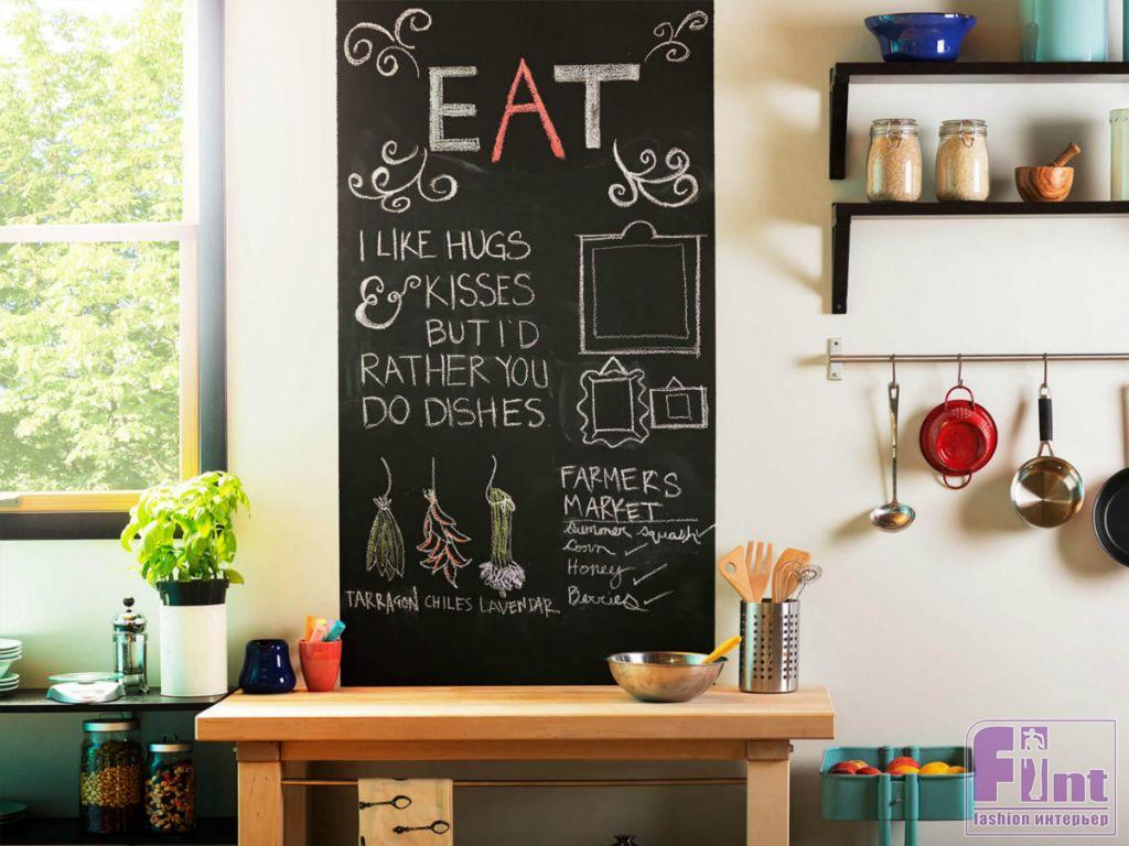 Не так давно дизайнеры стали активно включать в свои дизайн проекты такой элемент интерьера, как доску для записей. Такую доску можно поместить на стену около обеденного стола. Доска может быть как грифельной (меловой), так и магнитной. Эта доска не просто создаст ощущение современного интерьера, но ещё и будет выполнять своё прямое предназначение. На доске можно писать рецепты, записки членам семьи, или прикреплять при помощи магнита важные бумажки и даже фотографии. Также на магнитной доске можно крепить заметки или списки покупок.