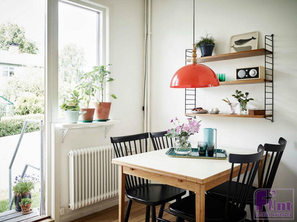 Уже неоднократно говорилось о том, что даже самый стильный интерьер можно испортить плохим освещением. И наоборот, грамотно подобранными осветительными приборами можно скрасить недостатки интерьера, и выделить достоинства. В любом случае будет приятно принимать пищу, если света будет много, и он будет регулироваться. Поэтому уместно будет повесить на стене за столом пару бра или светильников. В результате, если захочется создать романтическую атмосферу, достаточно будет лишь выключить верхний свет.