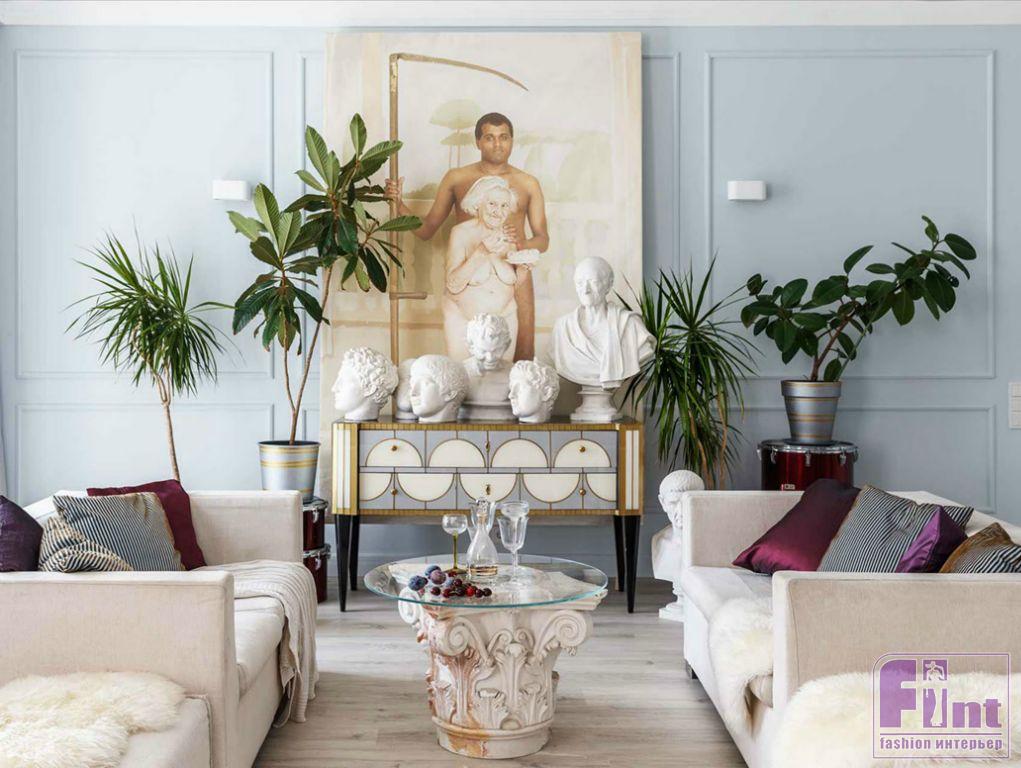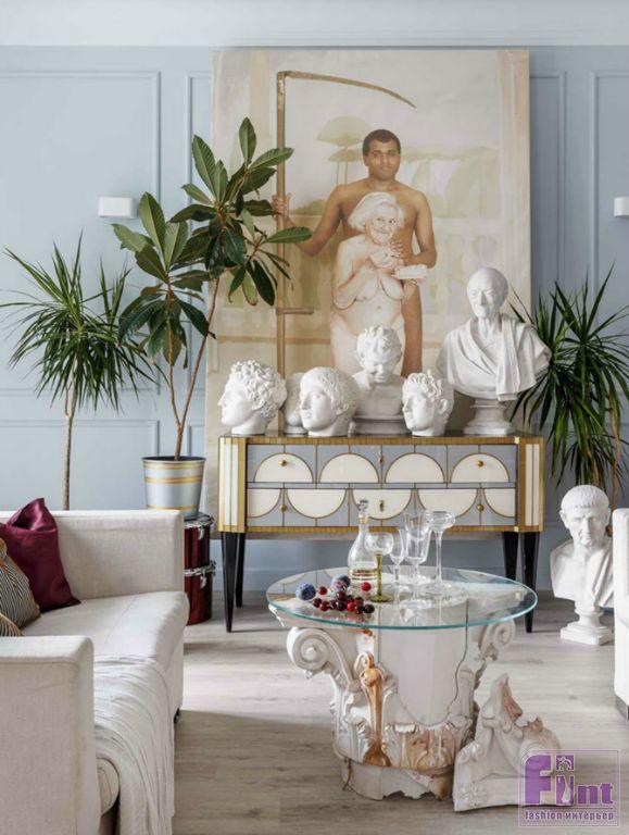 Артистичный интерьер в современном стиле с предметами искусства
