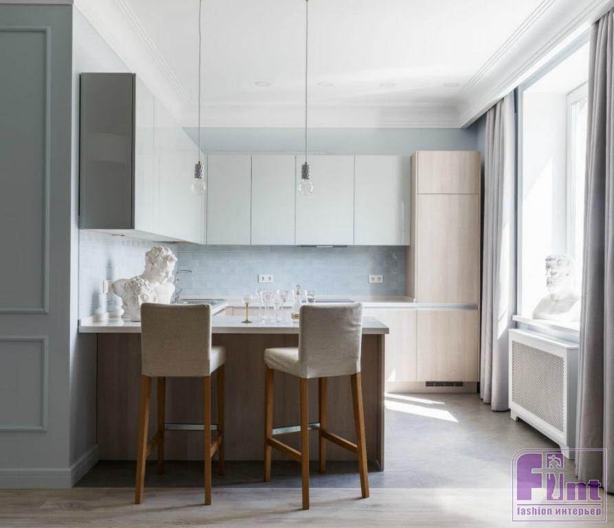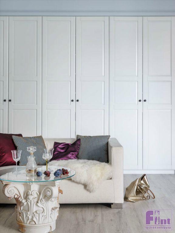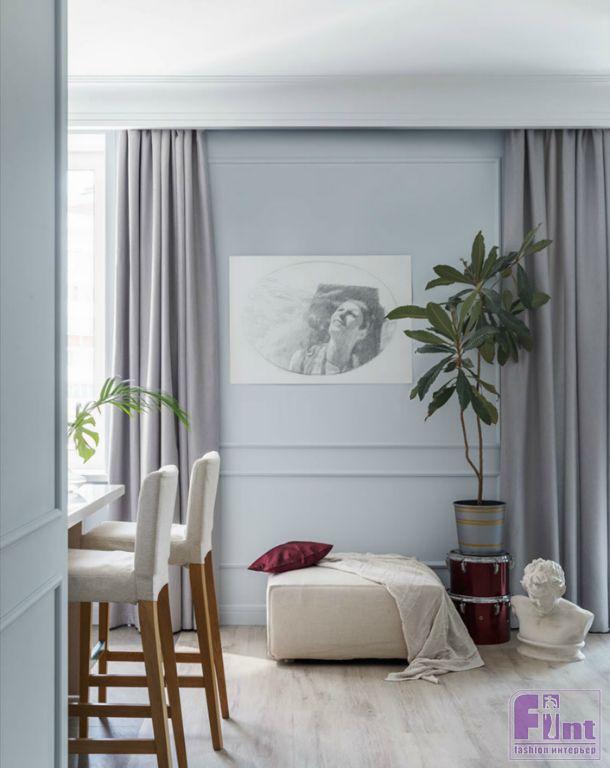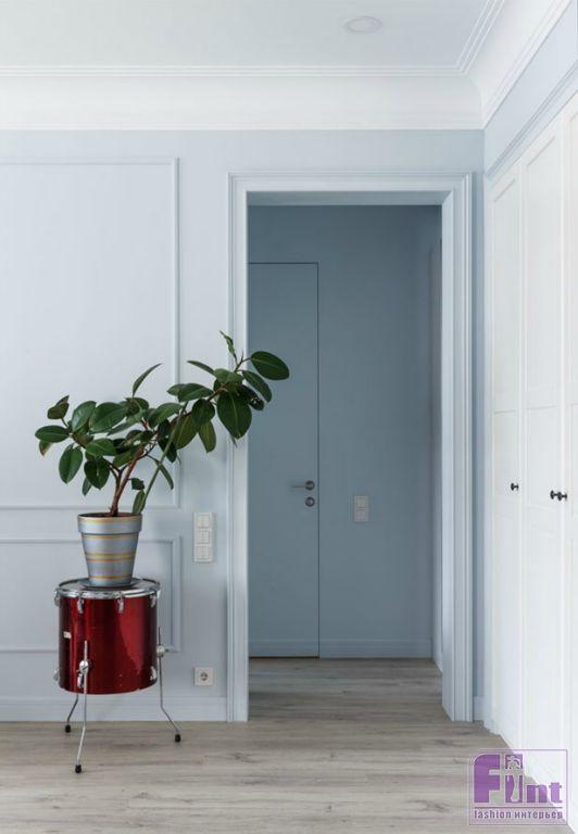 Основа цветового решения — светлые стены с яркими акцентами скульптур, винтажных вещей, картин — была предложена нами и поддержана заказчицей. Вся квартира является нейтральным спокойным фоном для будущих произведений искусства, которыми в дальнейшем будет наполнять свой дом хозяйка.