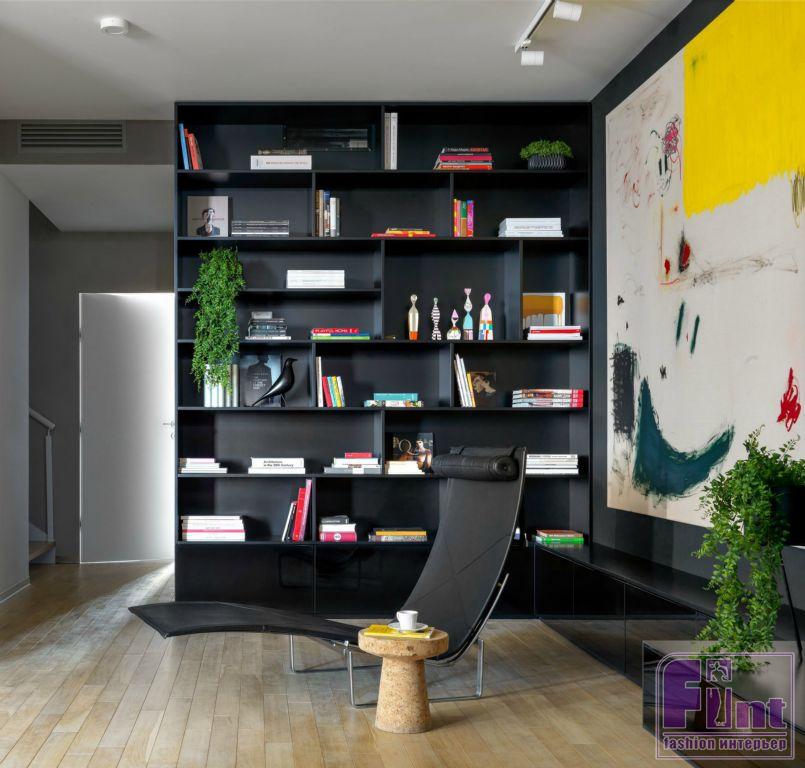Дизайнеры выполнили главные пожелания хозяина: большая гардеробная, много места для размещения книг, картин и других предметов искусства, а также идеальные условия для приема гостей и устроения домашних вечеринок.