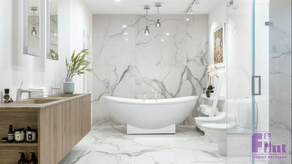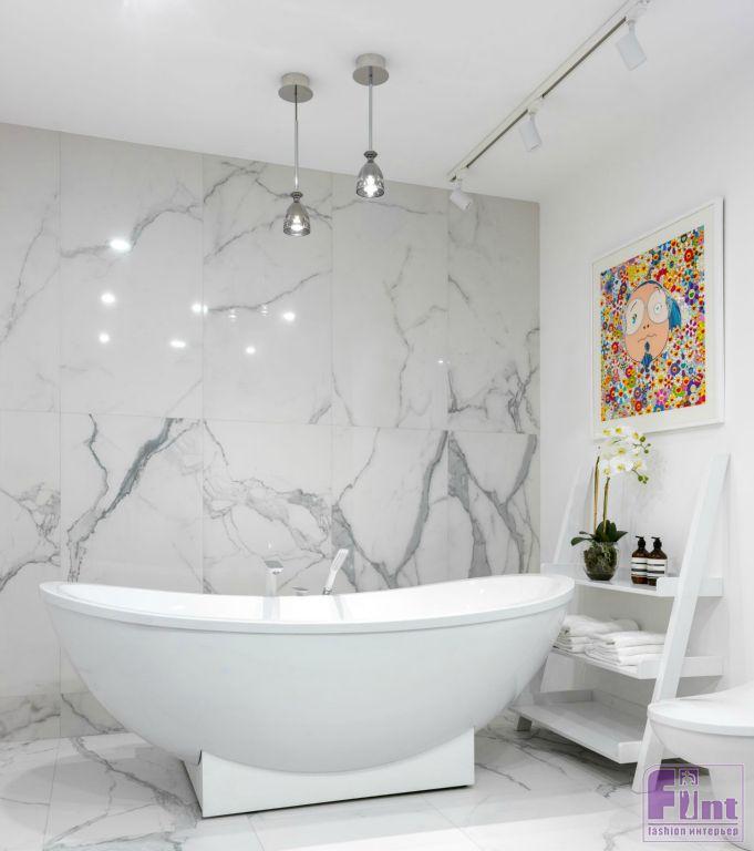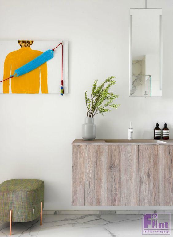 Чтобы добиться эффекта простора и воздушности, дизайнеры решили не дробить двухсотметровое пространство на большое число комнат. Также на визуальное объединение просторного жилья в единый объект играет общая стилистика всех помещений. И если в гостиной или спальне висят картины современных мастеров живописи, то и в санузле для изобразительного искусства нашлось место.