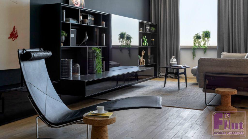 Дизайнеры выполнили главные пожелания хозяина: большая гардеробная, много места для размещения книг, картин и других предметов искусства, а также идеальные условия для приема гостей и устроения домашних вечеринок.