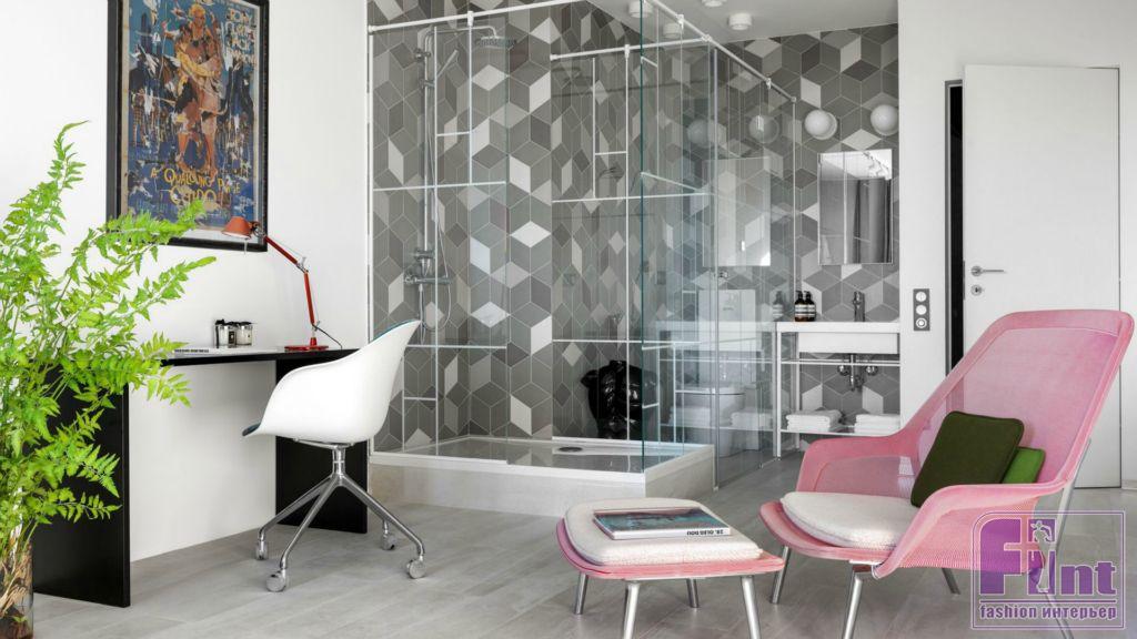Чтобы добиться эффекта простора и воздушности, дизайнеры решили не дробить двухсотметровое пространство на большое число комнат. Также на визуальное объединение просторного жилья в единый объект играет общая стилистика всех помещений. И если в гостиной или спальне висят картины современных мастеров живописи, то и в санузле для изобразительного искусства нашлось место.