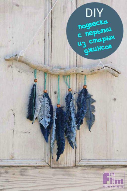 Как сделать подвеску для настенного декора из джинсовых перьев