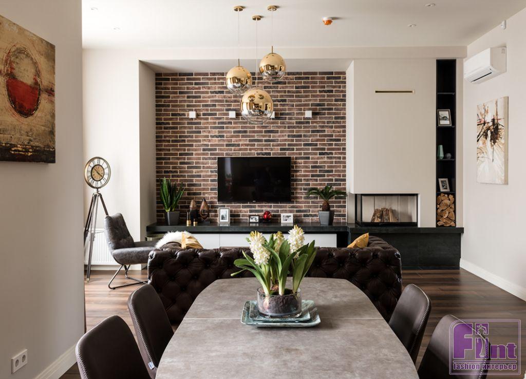 Стилистическую основу проекта составляют актуальные интерьерные стили лофт и модерн. При этом элементы «промышленного» стиля, кирпич и чёрный металл, использованы в интерьере деликатно и дозировано, разбавлены мягким рассеянным светом бра и светлыми оттенками стен и потолков.