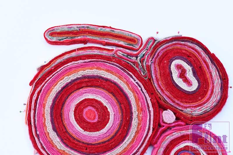 Для изготовления нашего потрясающего коврика мы решили использовать спиральные формы, напоминающие удивительно красивые каменные жеоды. Природные жеоды – это каменные полости, внутри которых формируются невероятные россыпи кристаллов, создающих восхитительные концентрические узоры. Наш коврик с его спирально закрученными тонкими разноцветными полосками будет немного напоминать такие минеральные творения природы.