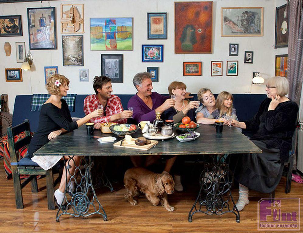 Красотой у нас в быту заведует Маша, она модельер, прекрасно шьёт, человек с удивительным вкусом. Удачно подобрала цвет стен — от жёлтого до тёмно-коричневого, развесила картины её отца, известного архитектора Александра Александровича Великанова, есть полотна Резо Габриадзе.