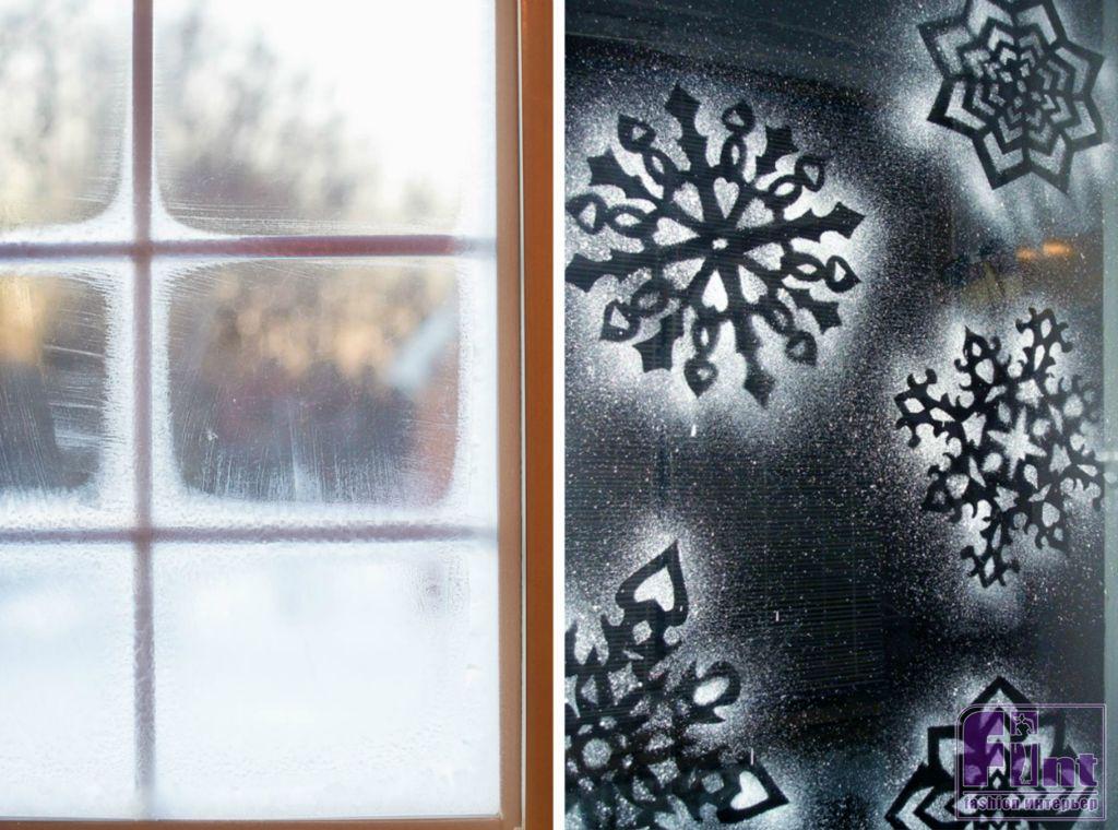 Этим способом вы получите морозные узоры, даже если на улице нет сильного мороза! Для этого нужна английская соль (продаётся в аптеках) и светлое пиво. Растворите 50 г соли в 100 мл пива и промакивающими движениями обычной губки нанесите смесь на стекло. Добавьте больше смеси по краям и углам стёкол и дождитесь высыхания. Если предварительно наклеить на окна вырезанные из бумаги снежинки, и наносить раствор поверх них, узор получится ещё более интересным, когда бумажные трафареты будут сняты.