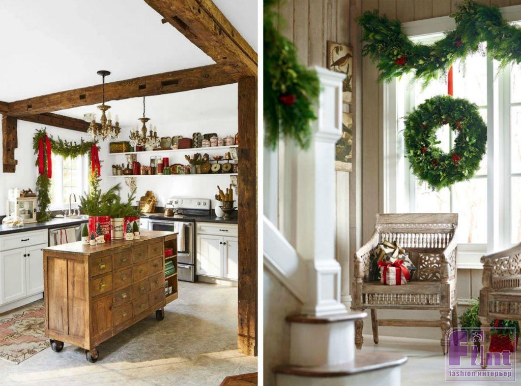Хвоей можно украсить карниз, если он расположен низко, как на этом фото. Или — взять палочку, оформить её ветками и подвесить к окну. Не забудьте добавить ёлочные украшения! Преимущество именно хвойной ветки очевидно. Она будет распространять по вашему дому удивительный аромат хвои, который поможет создать в вашем жилище праздничное настроение.