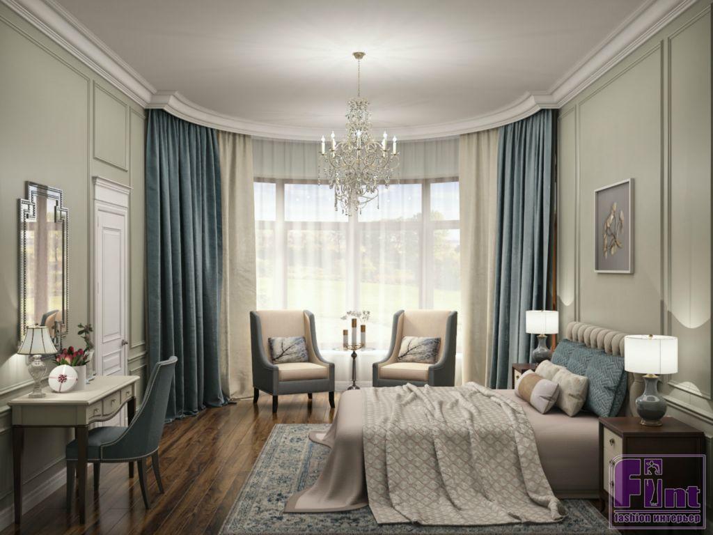 Стены хозяйской спальни и кабинета украшает характерная для классического стиля гипсовая лепнина. В отделке задействованы преимущественно натуральные материалы: пол выложен инженерной доской с верхним слоем из ореха и дуба, в прихожей и санузлах использована английская плитка. За счёт умелого сочетания всех этих элементов интерьера, в хозяйской спальне царит гармония сдержанной классики.