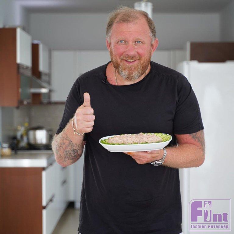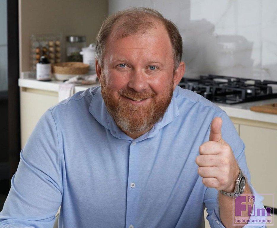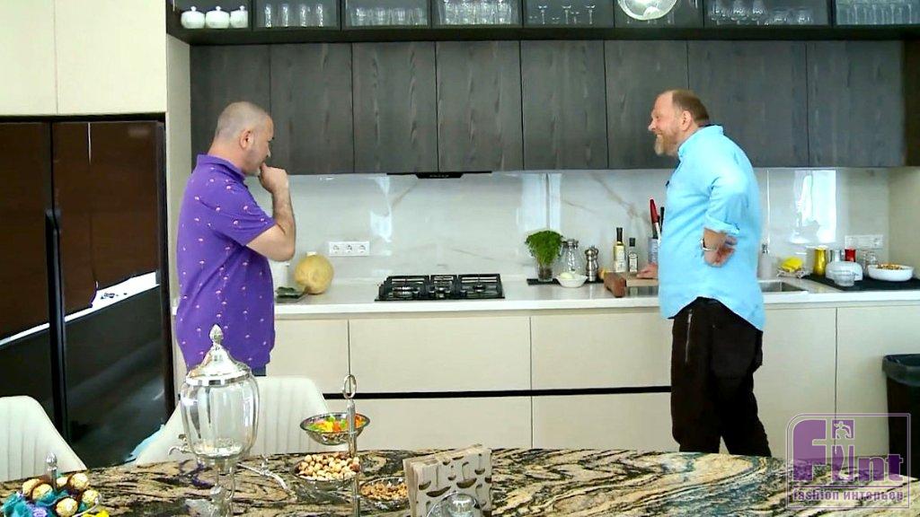 Константин с детства увлекался готовкой и с удовольствием помогал матери, придумывая оригинальные рецепты. Поэтому к оформлению собственной кухни он подошёл максимально взвешенно. Мебель изготовлена по его личному эскизу в одной из столичных фирм.