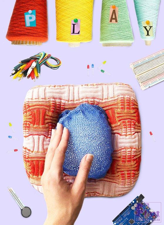 Дизайнер использовала вязаные чехлы, поскольку вязаные вещи всем знакомы и вызывают чувство тепла и уюта, а также обладают уникальной способностью к растяжению. Кроме того, трикотажные ткани мы обычно носим на себе, но в этой коллекции рассматривается идея использования их для «смягчения» нашей среды обитания и современных технологий.