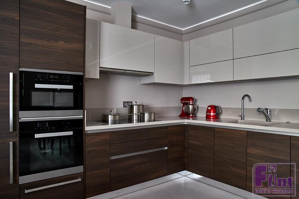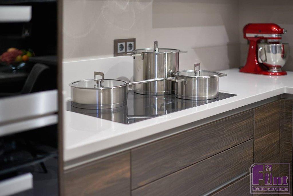 Кухню для Ирины Аллегровой изготовили по заказу в Германии. Антивандальные фасады кухонного гарнитура сделаны из ламината, что очень сильно облегчает уборку и уход за мебелью. В нижней части навесных шкафов установлена подсветка, которую можно регулировать не только по яркости, но и по тону света: от белого и холодного к тёплому жёлтому. Столешница изготовлена из искусственного камня по оригинальной бесшовной технологии. Ручек на шкафах нет, поскольку они открываются буквально одним нажатием.
