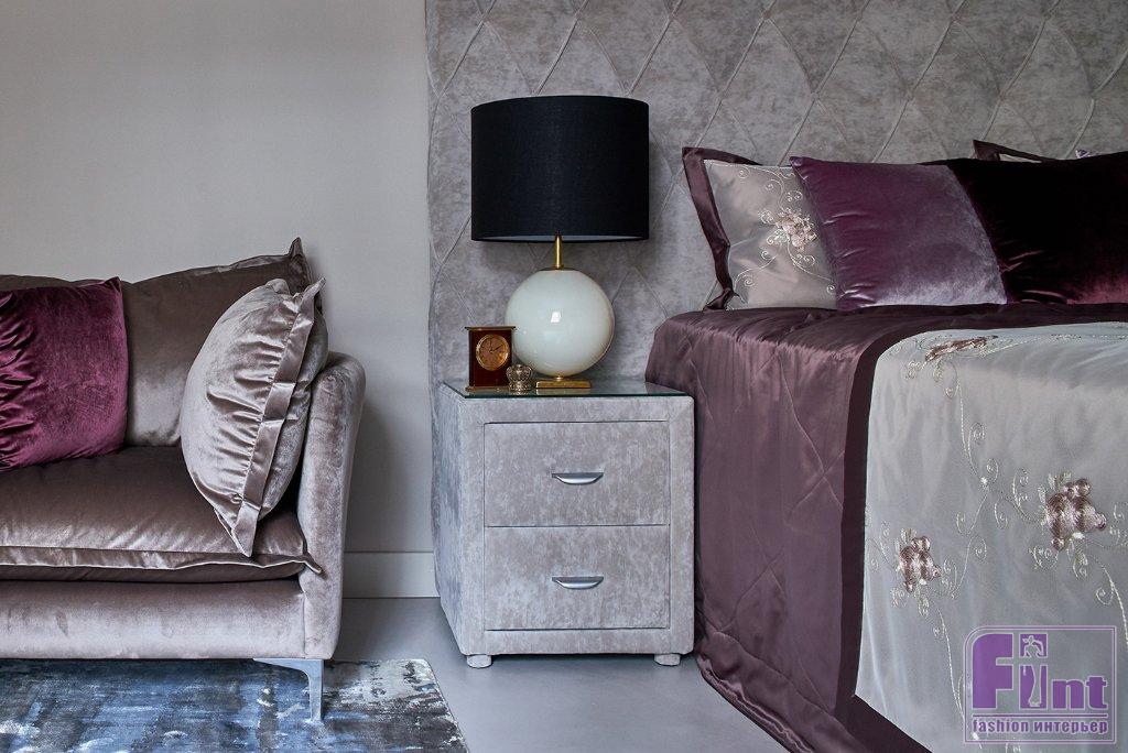 Профессиональные дизайнеры по интерьерам использовали новое решение для обустройства спальни – особую спальную систему. Это полный комплекс, который включает в себя высокий матрас, мягкое изголовье, основание и прикроватные тумбы. Спальная система, установленная в доме Аллегровой – это своего рода конструктор, каждый элемент которого имеет несколько вариантов исполнения. Мягкая мебель в спальне Ирины Аллегровой обита напоминающей бархат тканью благородного серого цвета. Шторы в спальне насыщенного сливового оттенка из струящегося атласа. Журнальный столик изготовлен по индивидуальному эскизу для интерьера певицы.