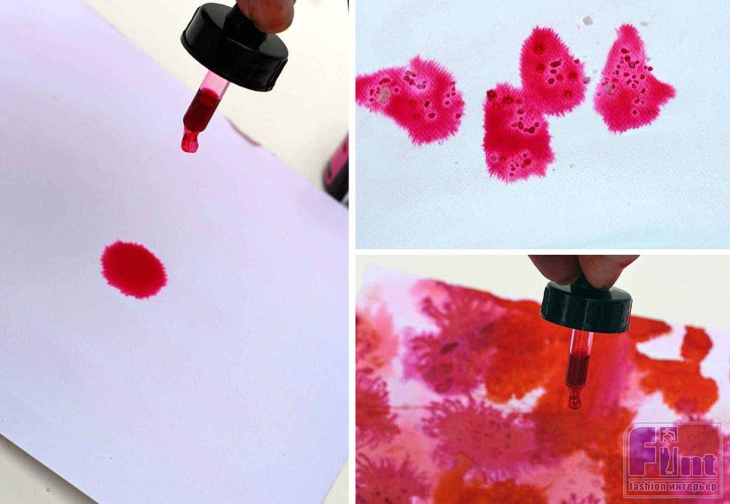 Затем начните декорировать сердечко капельками чернил, как вы практиковались ранее на обычной бумаге. Добавляем морскую соль и капли спирта, чтобы получились интересные узоры. После того, как акварельные чернила высохнут, просто смахните оставшиеся на поверхности кристаллы соли и оставьте сердечно сохнуть.