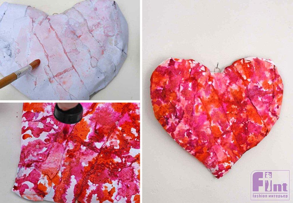 Раскрашиваем объёмное сердечко из папье-маше