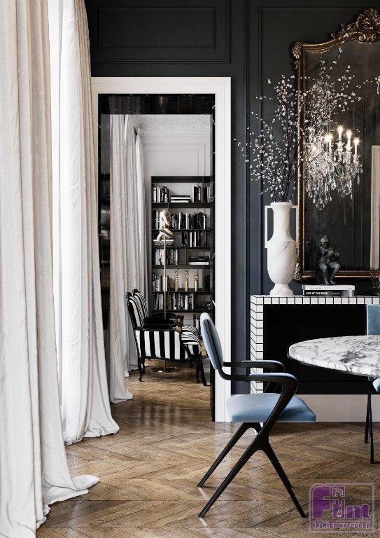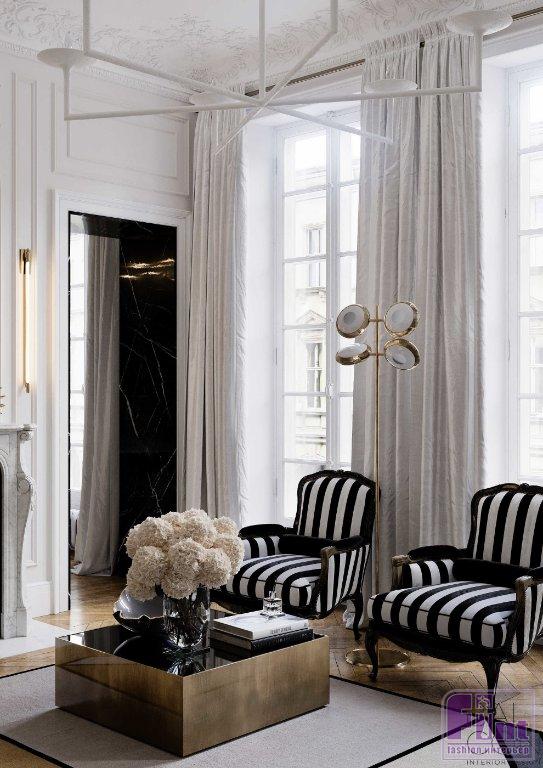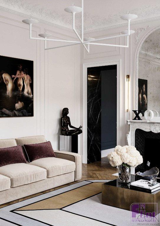 Дизайнеру Александру Козлову предстояло оформить апартаменты для заказчика, часто останавливающегося в Париже и нуждавшегося в пространстве для встреч с друзьями и бизнес-партнёрами. Как отметил автор проекта, вдохновение при работе над интерьером этой квартиры он черпал в работах признанных мэтров дизайна. Таким образом, в проекте можно найти отголоски творчества Jean Louis Deniot и Damien Langlois-Meurinne.