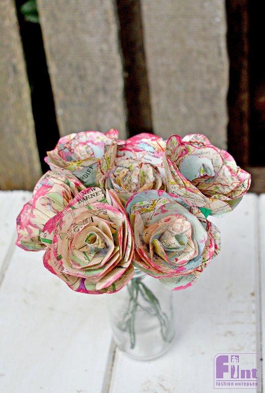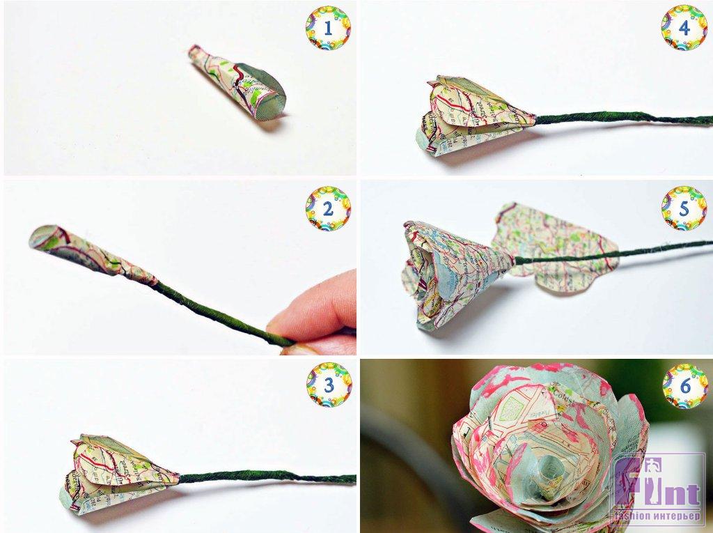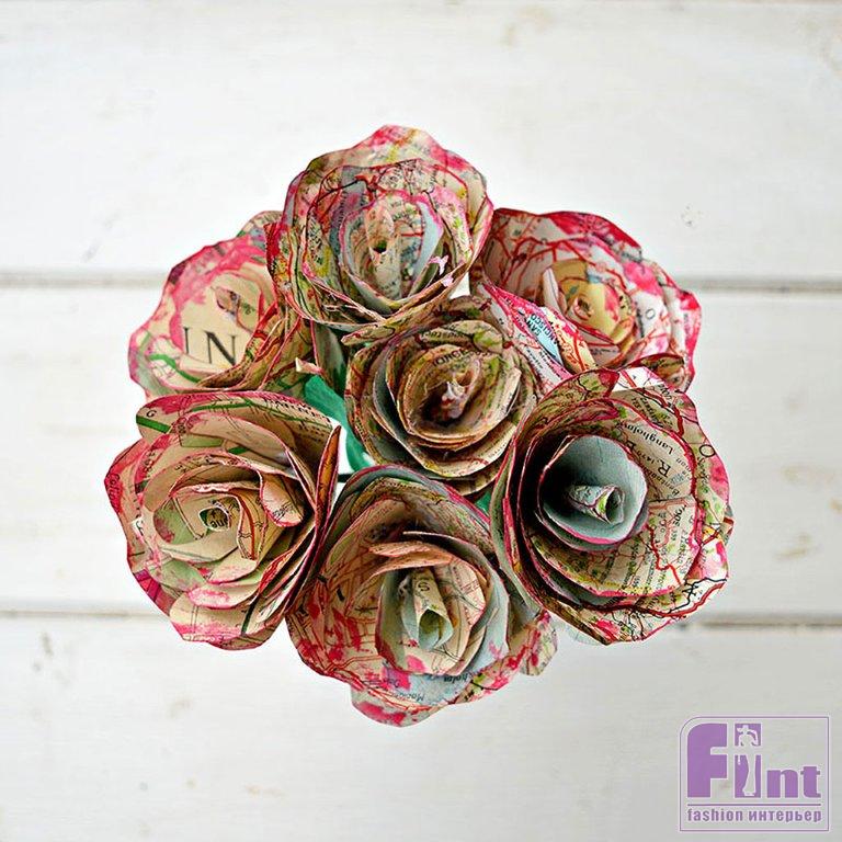 Как сделать невероятный букет роз из старых географических карт на 8 марта