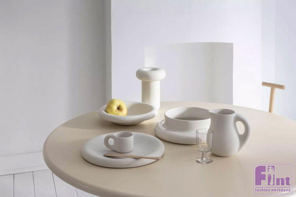 Британский дизайнер Фэй Тугуд (Faye Toogood) выпустила первую коллекцию предметов для домашнего декора. Вдохновлённая своей коллекцией найденных камней и костей, а также домашней выпечкой и тестом, она вручную вылепила из глины кружку и кувшин, формы которых отсылают к характерному дизайну её мебели.