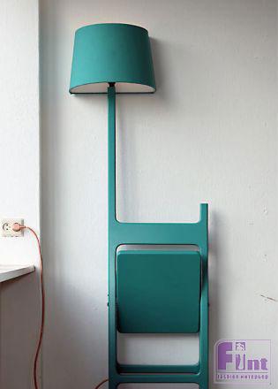Торшер имеет плоский абажур с обратной стороны спинки стула, поэтому в сложенном состоянии этот необычный предмет мебели можно легко прислонить к стене. В таком сложенном состоянии этот супер "стул-лампа" занимает совсем мало места.