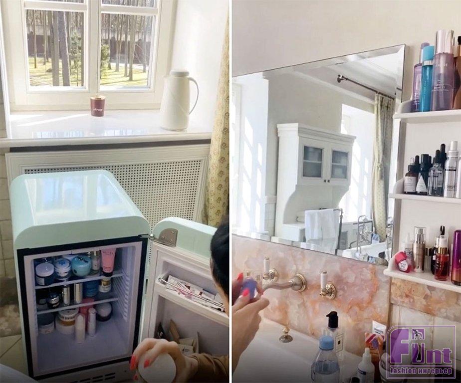На самом деле Канделаки уверенна, что внешность человека может меняться в положительную сторону благодаря физическим нагрузкам, хорошему режиму дня и правильному рациону питания. И она тому достойное подтверждение. Исключительное внимание заслуживает ванная звезды. В комнате знаменитости стоит специальный холодильник для хранения косметических средств, которые помогают Тине сохранять прекрасный внешний вид.