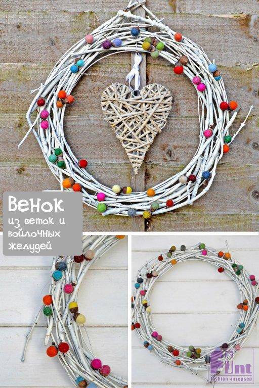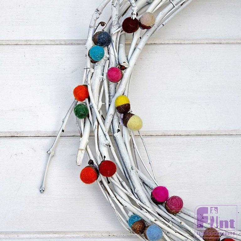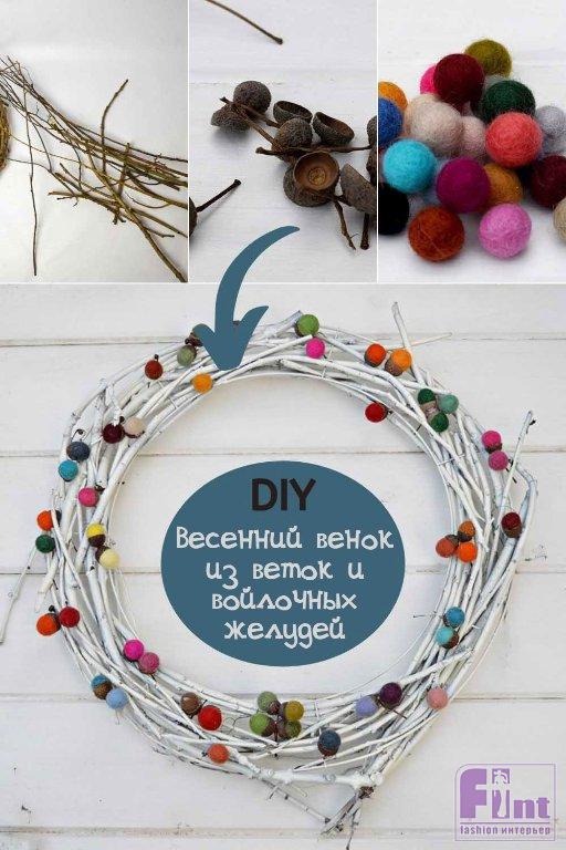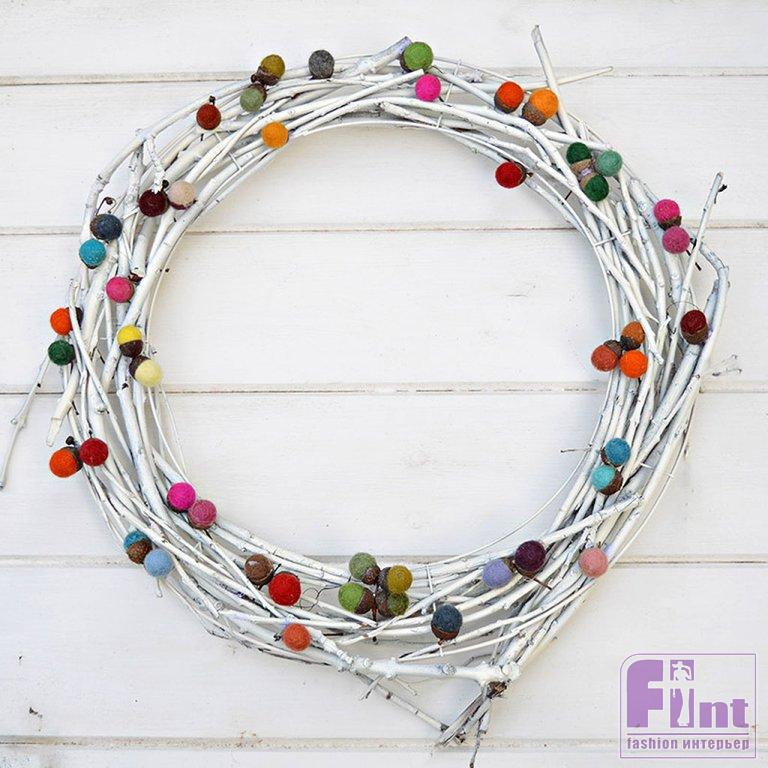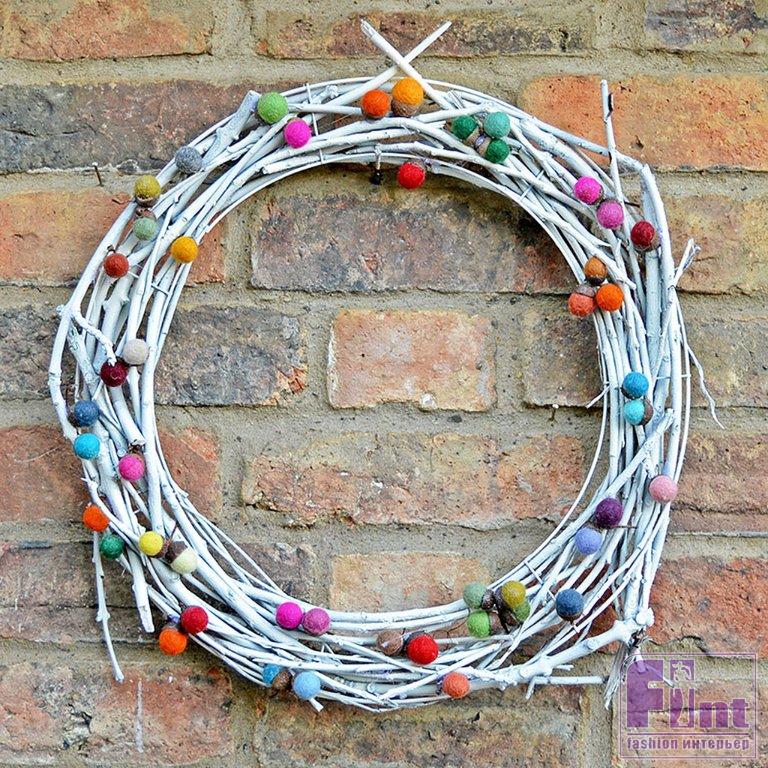 Как сделать весенний венок из веточек и ярких шерстяных желудей