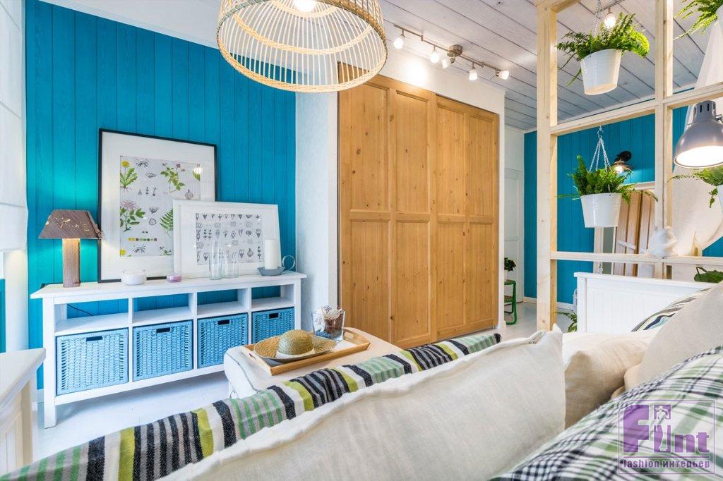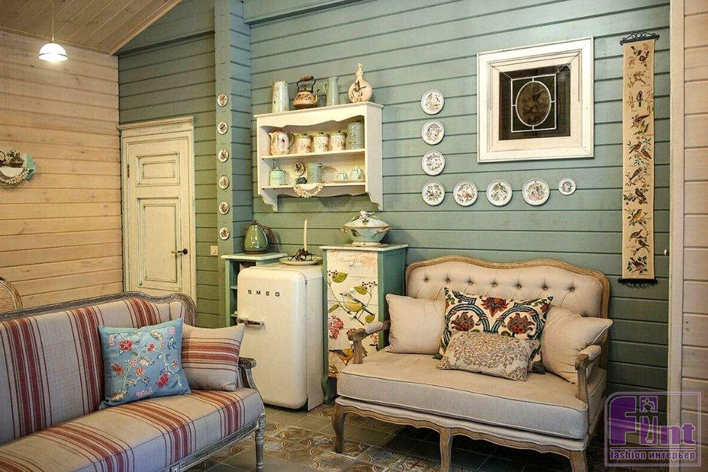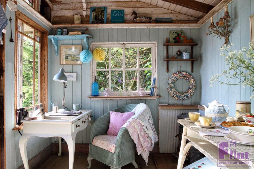— Из отделки недорого использовать крашеную вагонку, побелку, штукатурку, плитку, мозаику, сетку, провода, веревки, бусы, металлические и зеркальные поверхности. Нет ничего более эффектного для изменения впечатления, чем перекрашивание стен и мебели. Есть много красок, которые без запаха и с минимальным временем высыхания помогут преобразить любую поверхность. Поэтому тёмно-коричневые тумбочки или «бабушкина» стенка, сосланная на дачу, могут превратиться в интересные предметы мебели, если сменят унылый цвет на что-то лёгкое и актуальное. Из универсальных решений — сочетание цвета дерева (пол — стена или пол — потолок) с белым (мебель) и серым (стена и/или мебель).