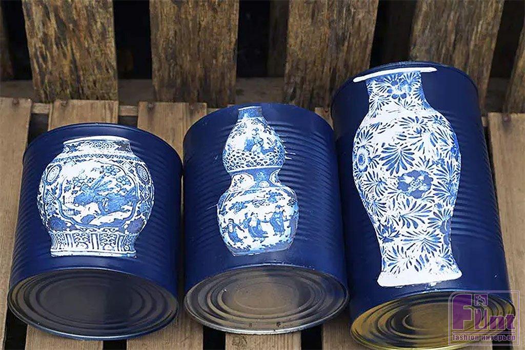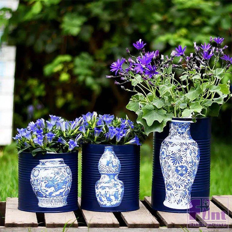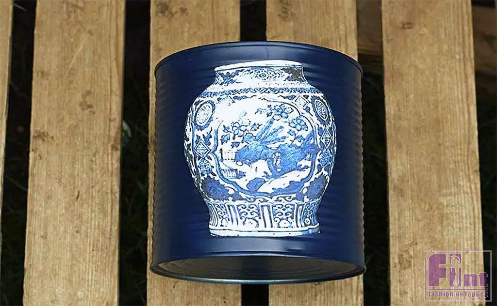 Как известно многим мастерам и любителям рукоделия, самым популярным исходным материалом для создания цветочных горшков, кашпо и ваз для цветов являются консервные банки. Сегодня мы расскажем, как своими руками превратить самые обычные консервные банки в очень весёлый аналог знаменитой бело-синей китайской керамики и украсить свой дом с нотками невероятно модного в прошлом стиля шинуазри. Мы решили сделать сразу несколько таких «ваз», чтобы создать своеобразную коллекцию легендарного китайского фарфора.