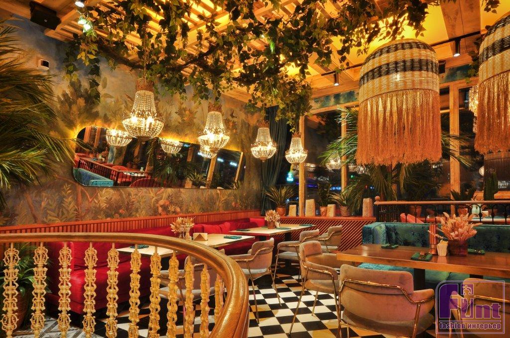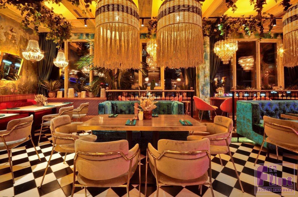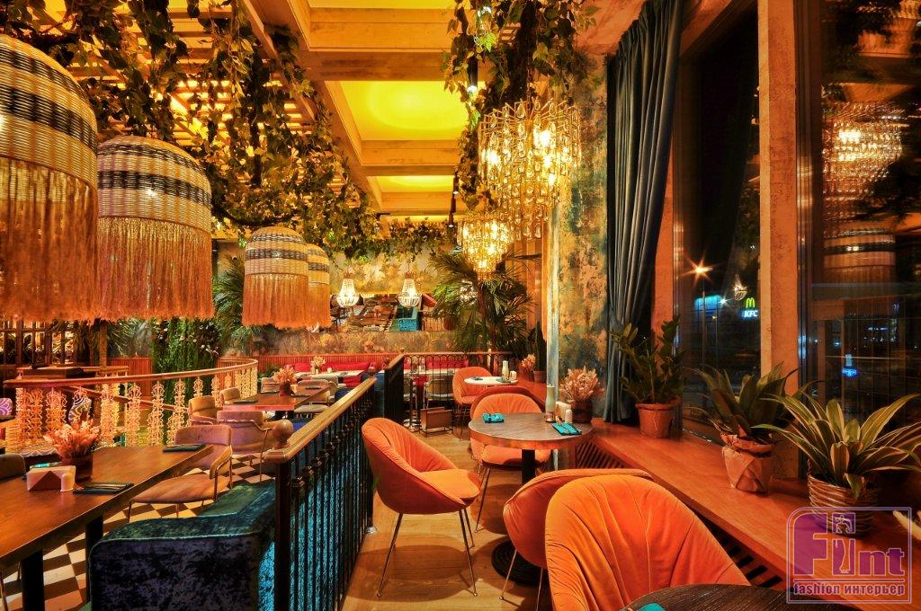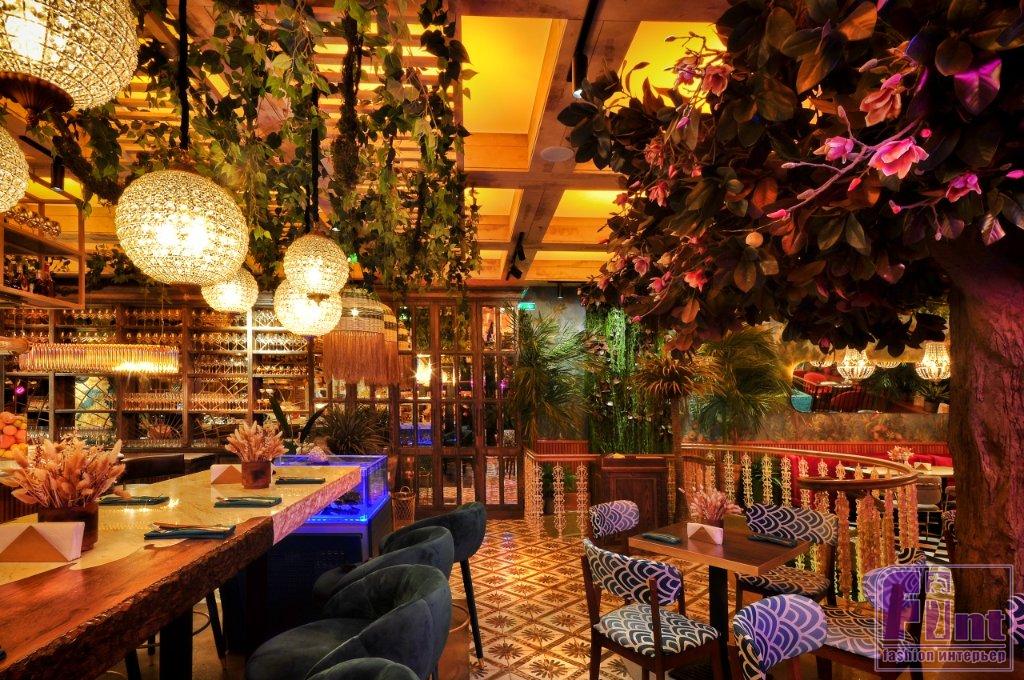Стильный, вечно зелёный, яркий и незабываемый дизайн интерьера ресторана в Перми